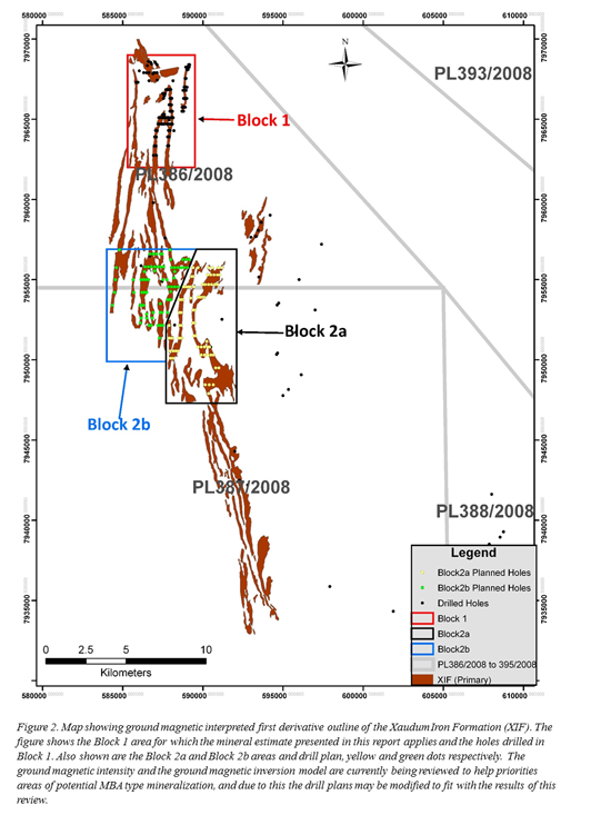 September 02, 2014 441 Mt Initial Resource Estimate for Block 1 of the Xaudum Iron Project, Botswana