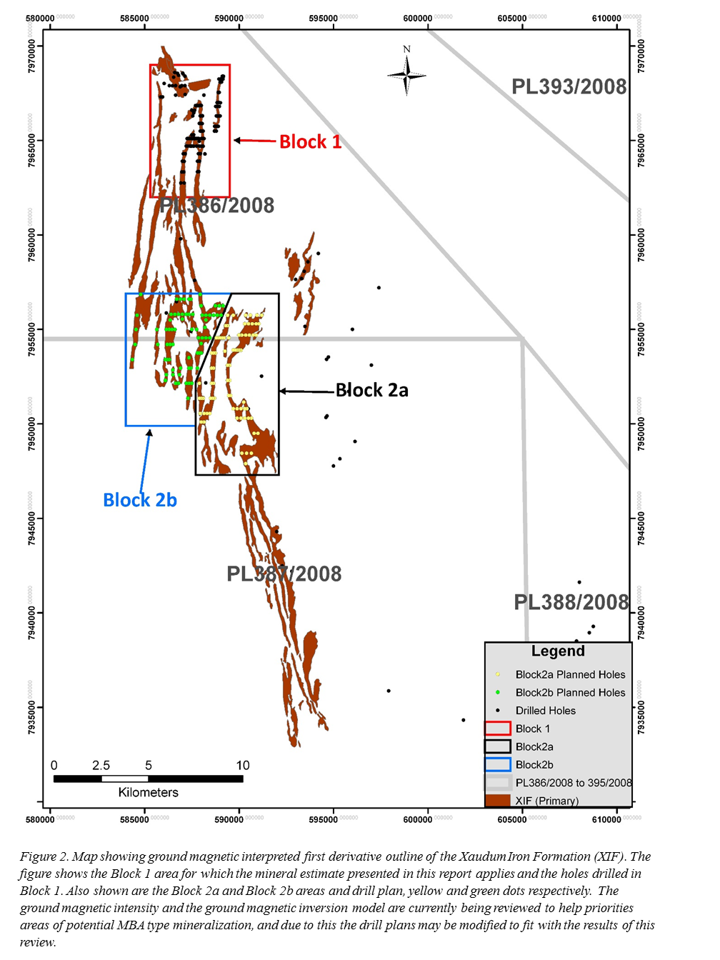 Tsodilo is currently drilling the next exploration area referred to as Block 2a, where the company expects to define a significant Inferred Mineral Resource in due course which will significantly increase the Xaudum Iron Project total Mineral Resource.