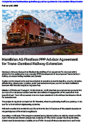 February 20, 2026 - Railways Africa Namibian AG Finalises PPP Advisor Agreement for Trans-Zambezi Railway Extension